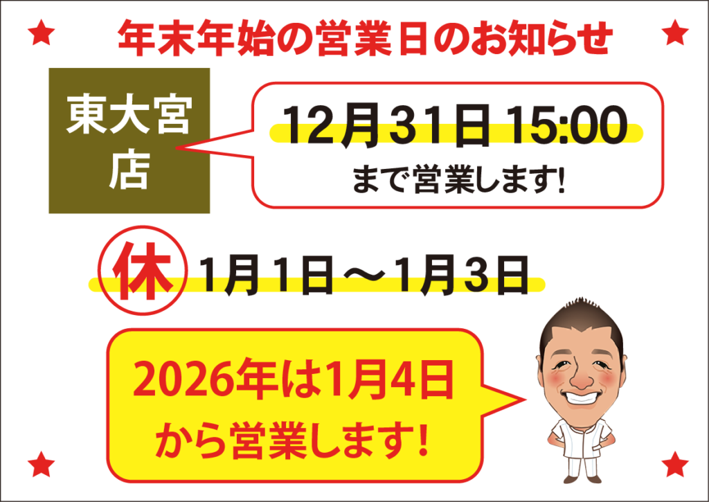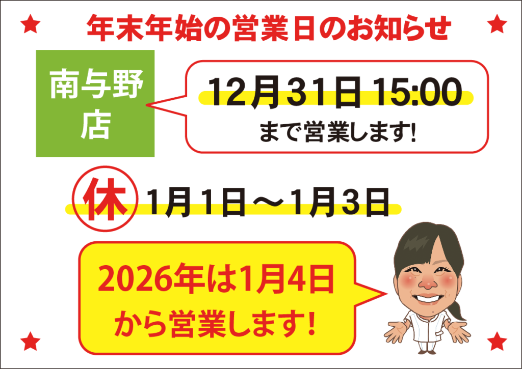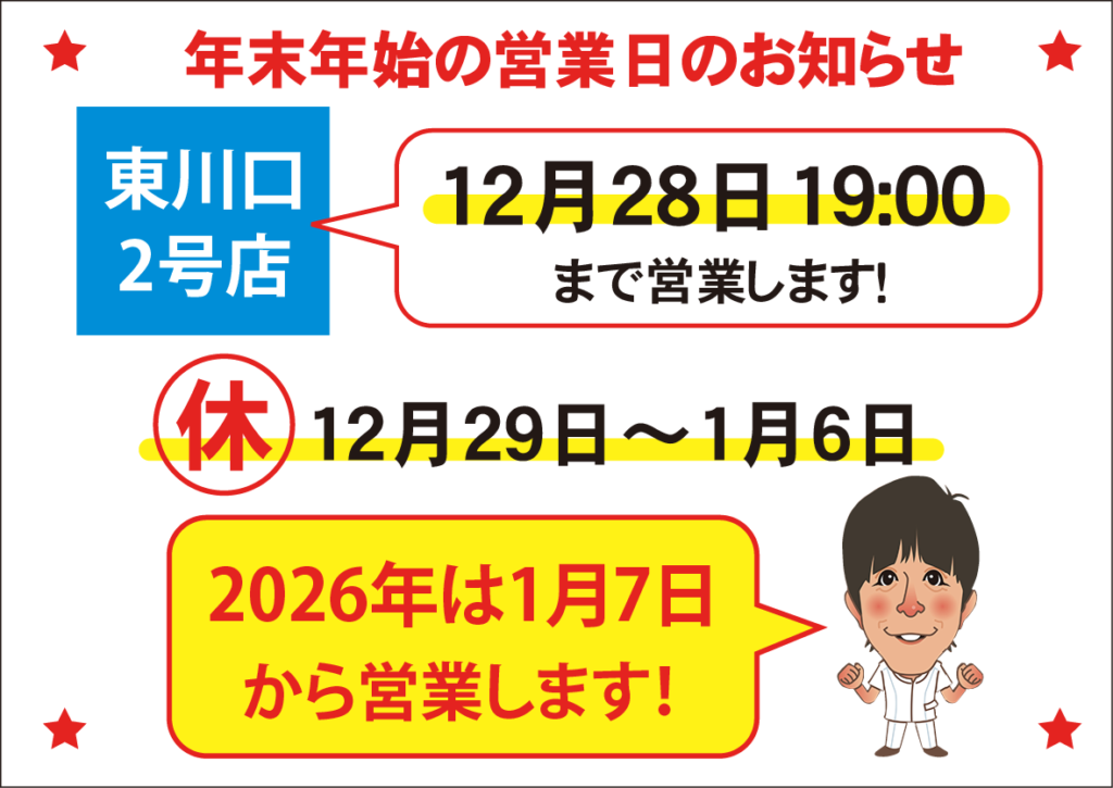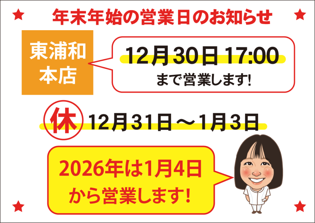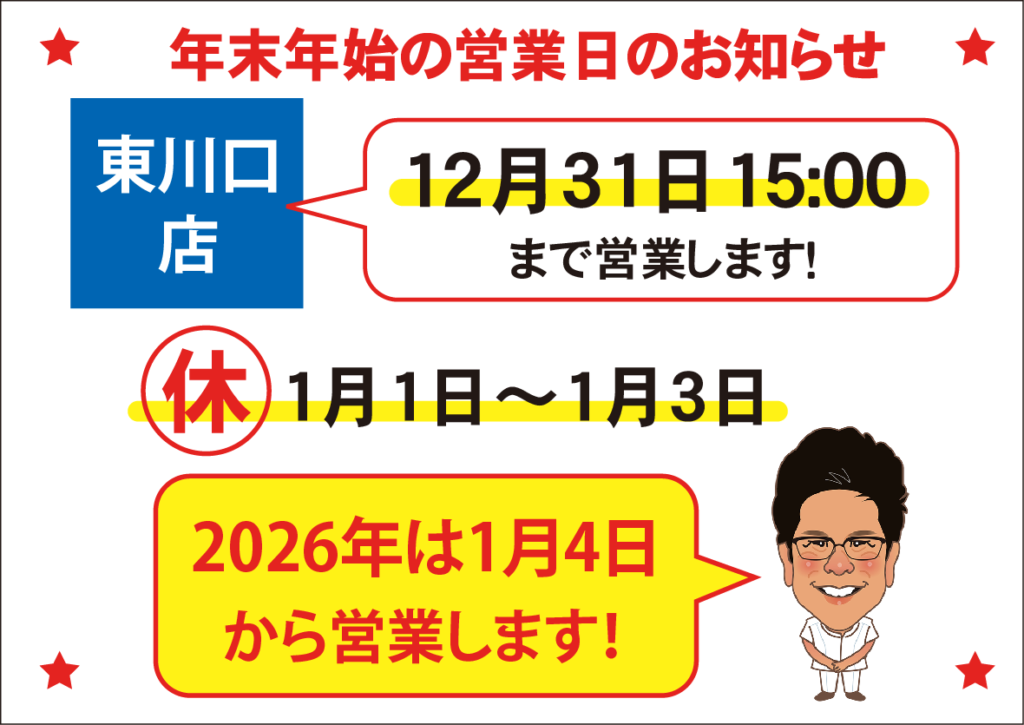 ※ 店舗ごとに年内最終営業日・時間が異なります