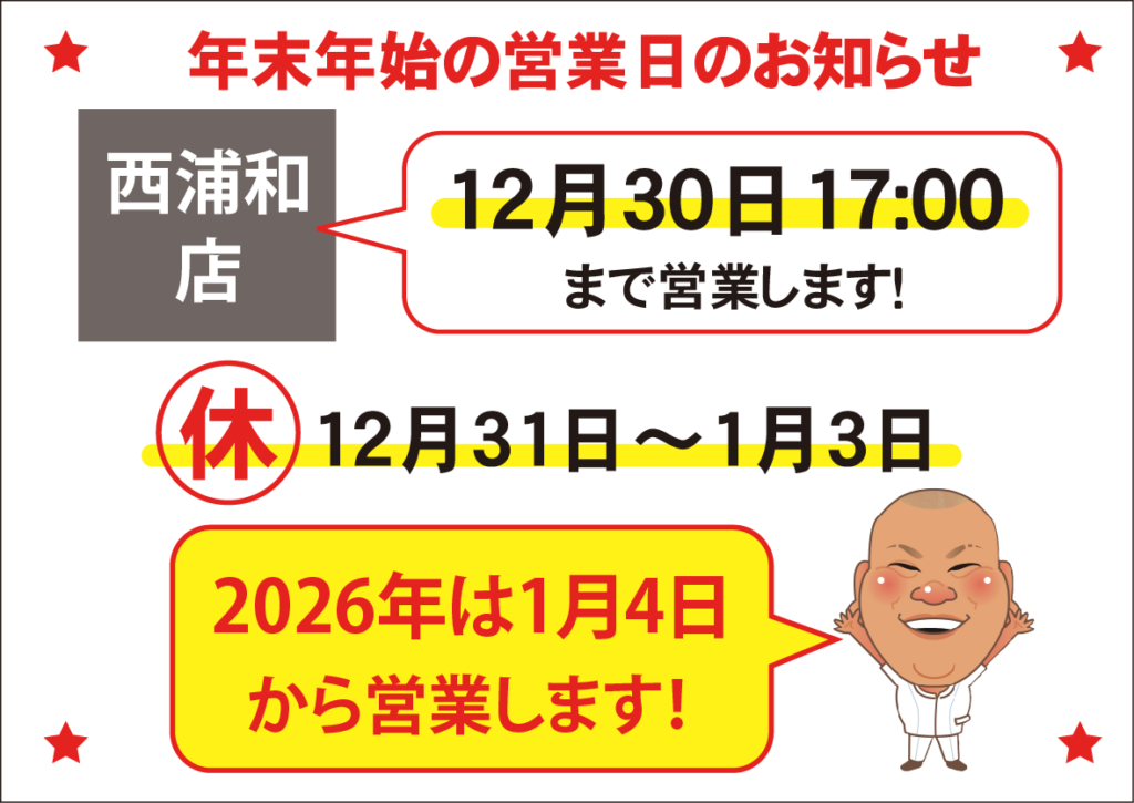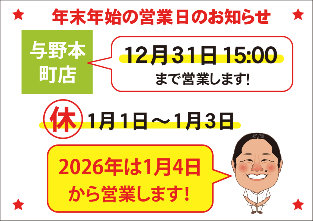 【年末年始の営業のお知らせ】