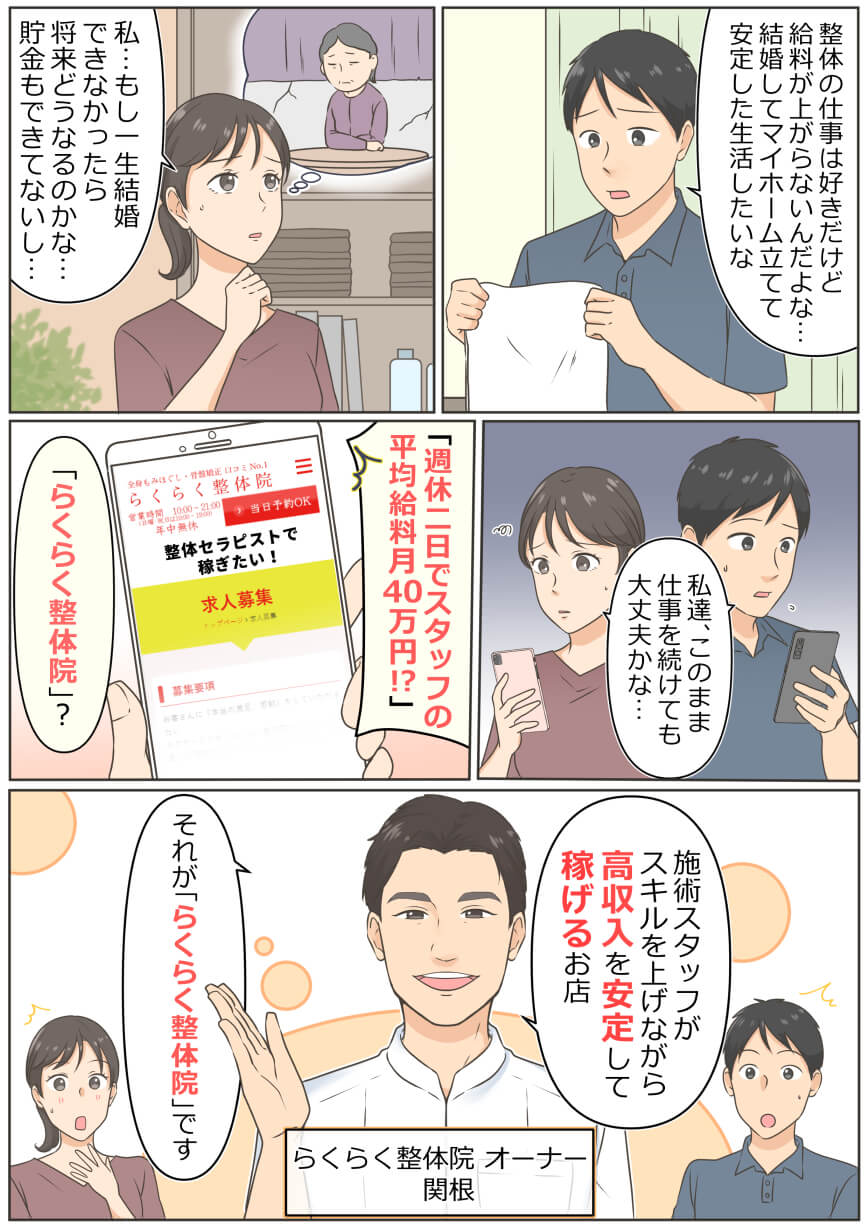 スタッフ平均報酬40万円超え!(完全週休二日)開業10年の「らくらく整体院」で大好きな仕事でスキルを上げながら「安定して稼ぎ」、結婚、マイホーム、貯金、旅行、車などを手に入れて、将来不安がない人生を手に入れる道。